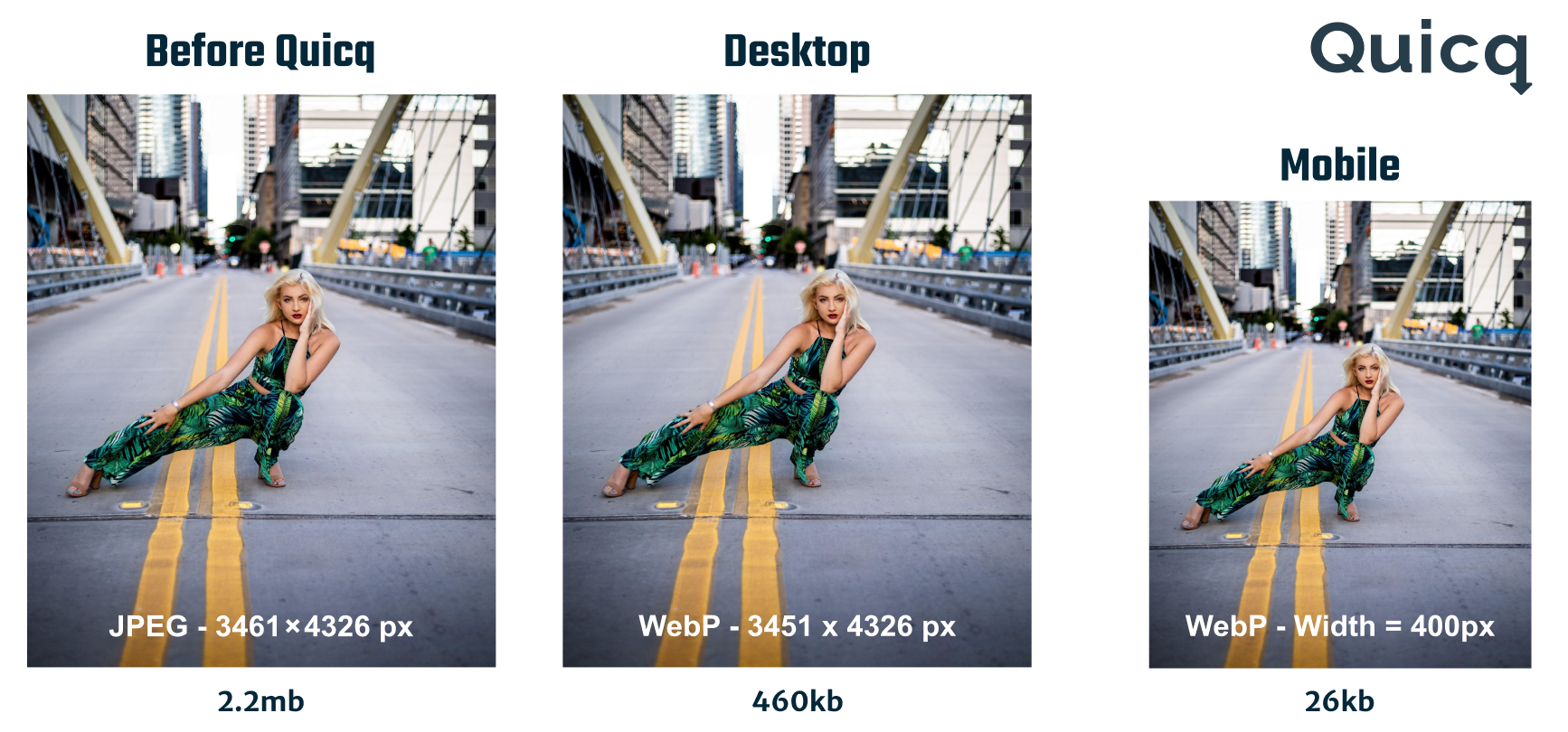 Quicq's smart technology automatically switches between different next-gen image formats based on the visitor's device
